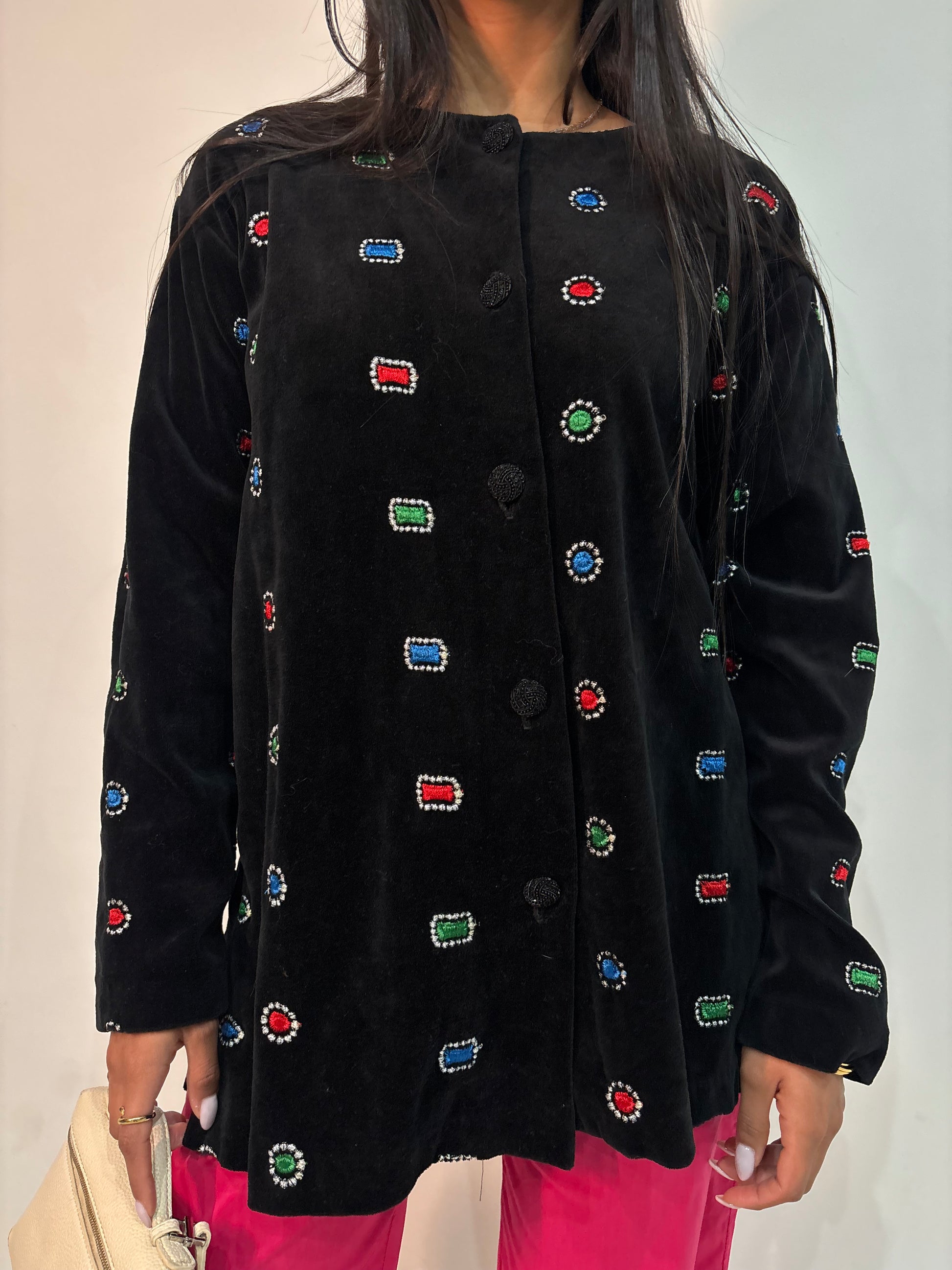 Blazer negro velvet con print bordado