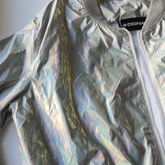 Bomber jacket plateada tornasol